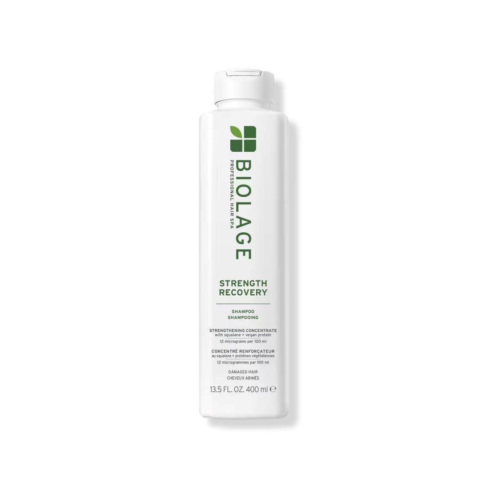 Restore your hair’s strength with Biolage Strength Recovery Shampoo, specially formulated with olive squalane and vegan proteins. This gentle shampoo effectively cleanses and detangles damaged hair, delivering 3x stronger strands after just one use.* It locks in moisture while reducing breakage, helping to restore your hair’s natural softness and movement. Safe for color-treated hair, this shampoo nourishes and strengthens each strand for healthier, more resilient hair every day.