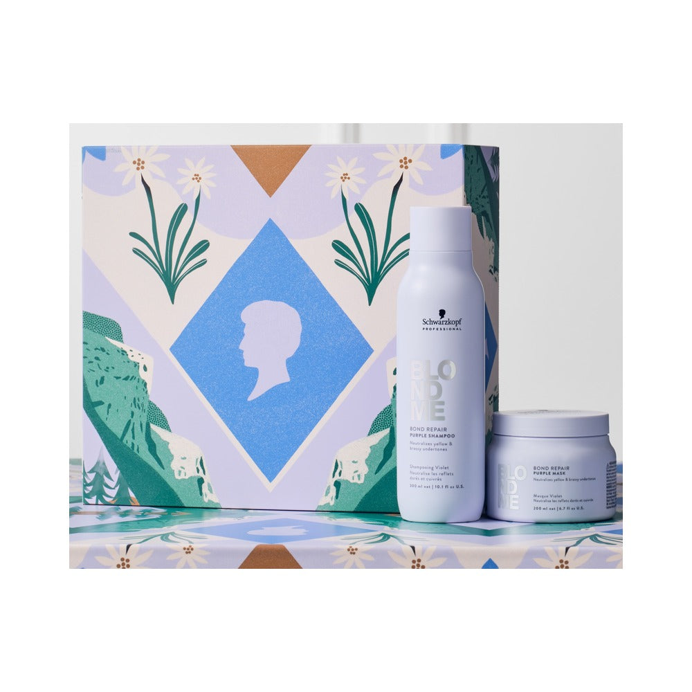 BLONDME Purple Toning Bond Repair Gift Box – a gift set including the Neutralizing Shampoo (300ml) and Neutralizing Mask (200ml).