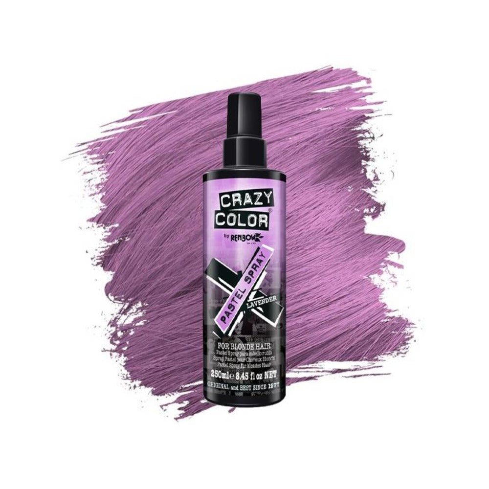 Crazy Color Lavender Pastel Spray is a ready-to-use spray with built in purple pastel pigment giving blonde hair an instant burst of colour.