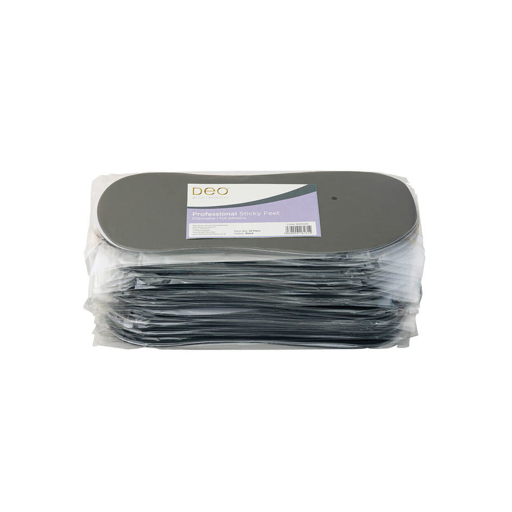 Our adhesive Deo black sticky feet have been developed to ensure a comfortable, mess free and slip-resistant walk to and from the treatment area and are disposable for hygiene and convenience.