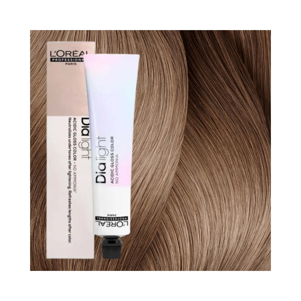 L'Oréal DIA Light is a demi-permanent, ammonia-free color line designed for professionals looking to enhance shine, add tone, and deliver a naturally luminous look. Ideal for clients with sensitized or color-treated hair, DIA Light gently deposits color while maintaining the hair’s integrity. With a unique acidic pH formula, DIA Light closes the hair cuticle, resulting in a smooth, polished finish with mirror-like shine—perfect for toning, glossing, or soft color refreshes.