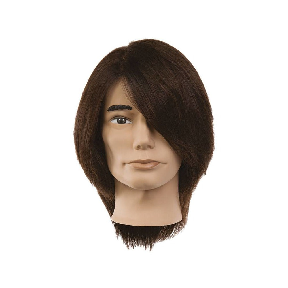 100% human dark hair that can be used for men's sculpting, colouring and perming techniques.